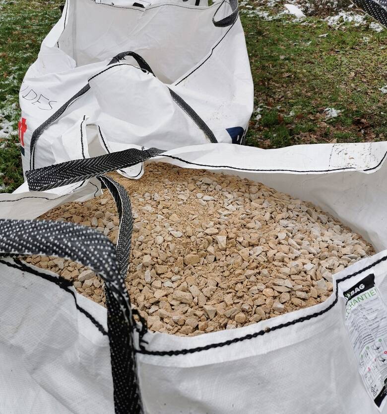 On a reçu le concassé pour le sol, et les lambourdes pour la structure intérieure.